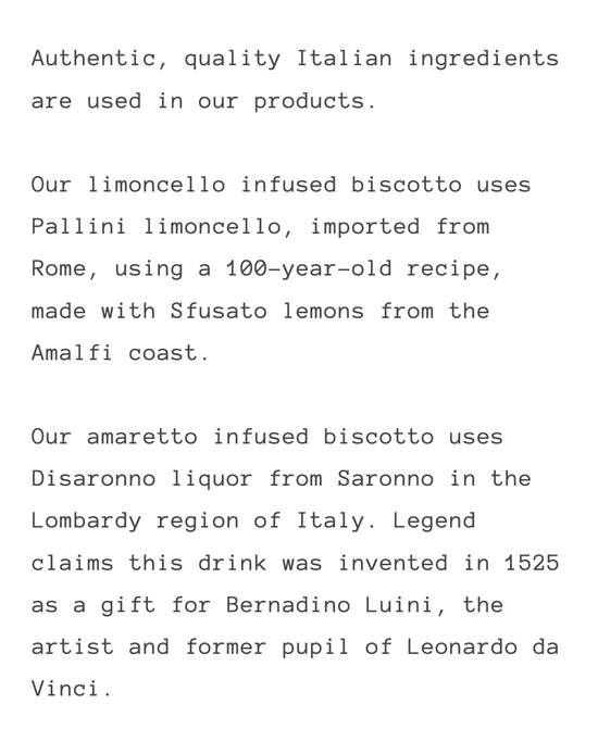 Authentic, artisan Italian biscuits and sweet treats, using the finest ingredients.